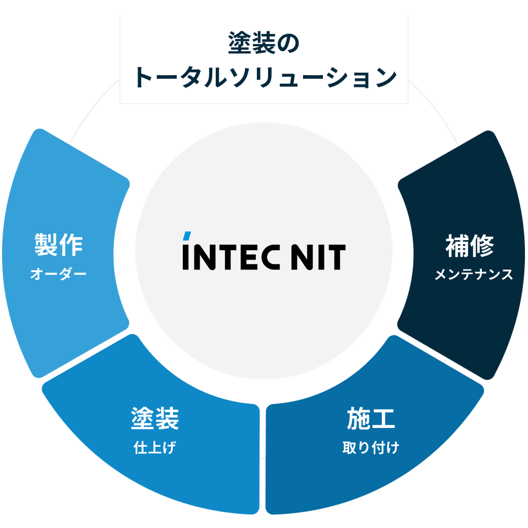 用途や環境に応じた最適な塗料選定はもちろん、製品の製作や取り付け施工まで、塗装が関わる様々な工程をインテック日塗が一括監理いたします。