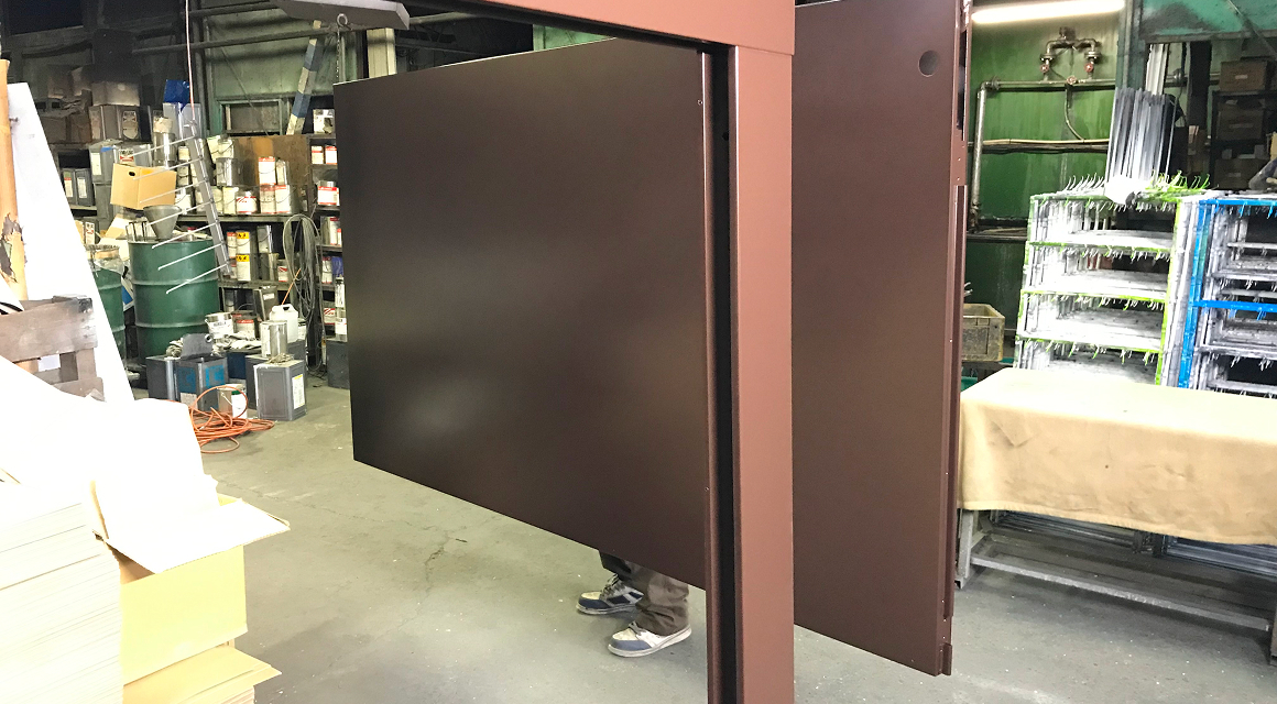 平成元年より金属焼付塗装を開始し、建築金物、機械板金を主に30年以上の実績を積んできた工場です。アルミ材の表面皮膜加工はノンクロメート化成処理を採用。量産塗装ラインは長尺6000mmまで生産可能で溶剤塗装、粉体塗装など、あらゆる塗装に対応しています。また、大型製缶品・大型ベースフレーム・タンク・鋼材などの重量塗装にも対応でき、ショットブラスト処理と併用することで、あらゆる重防食塗装にも対応できます。