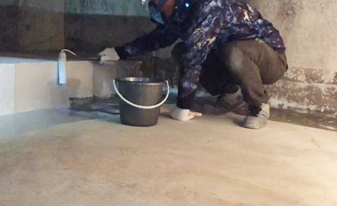 地下タンク室コンクリート面立ち上げ部補修防水塗装